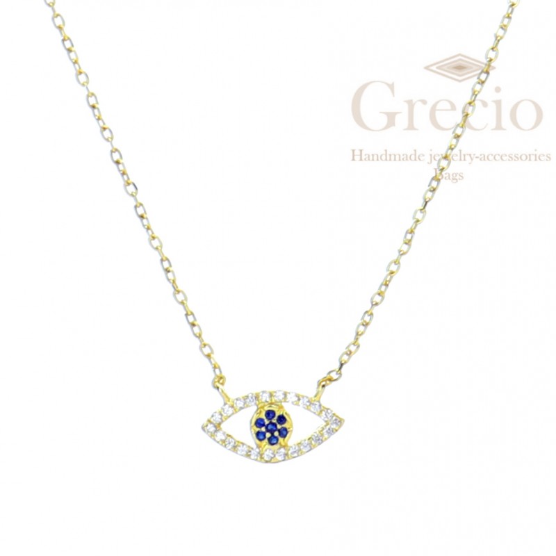 Κολιέ με οβάλ μάτι από ασήμι 925 . Το αγαπημένο μας σύμβολο προστασίας σε ένα όμορφο οβάλ σχήμα, διακριτικό και λαμπερό με άσπρα και μπλε ζιργκόν. Διατίθεται σε ασημένιο, επιχρυσωμένο ροζ και κίτρινο χρυσό χρώμα. Το μήκος της αλυσίδας είναι 40-45 εκ.
