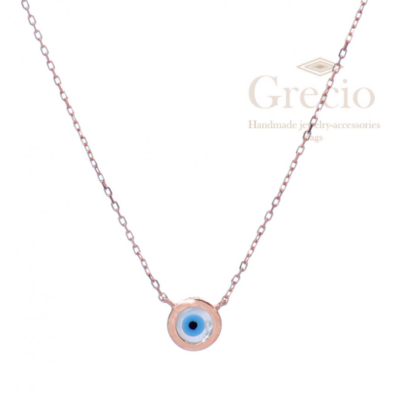 Κολιέ με μάτι από ασήμι 925 και φίλντισι στο εσωτερικό του. Διατίθεται σε  επιχρυσωμένο ροζ και κίτρινο χρυσό χρώμα. Το μήκος της αλυσίδας είναι 40-45 εκ.