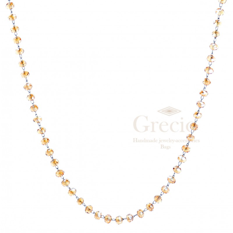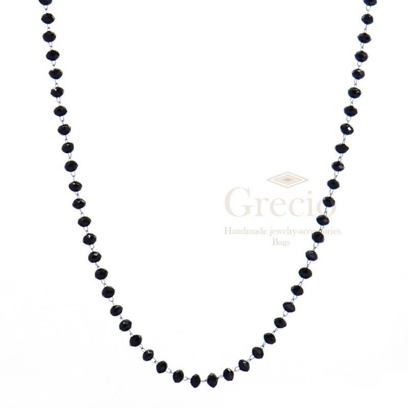 Ροζάριο σε διάφορα χρώματα με ασημί ή ροζ επιχρύσωση μεταλλικές λεπτομέρειες. Το μέταλλο του είναι ανοξείδωτο ατσάλι και έχει μήκος 40-45cm (40cm μήκος του κολιέ και 5cm μήκος extension).