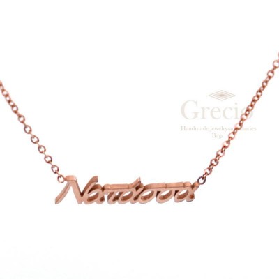 Κολιέ με τα ονόματα Μαίρη, Μαρία, Μαριάννα, Ναταλία, Νατλασσα. Το υλικό τους είναι ανοξείδωτο ατσάλι και διατίθενται σε ασημί και ροζ επιχρύσωση. Μόνο το Μαρία διατίθεται σε κίτρινο χρυσό. Το μήκος τους είναι 45cm (40cm η αλυσίδα και 5cm το extension).