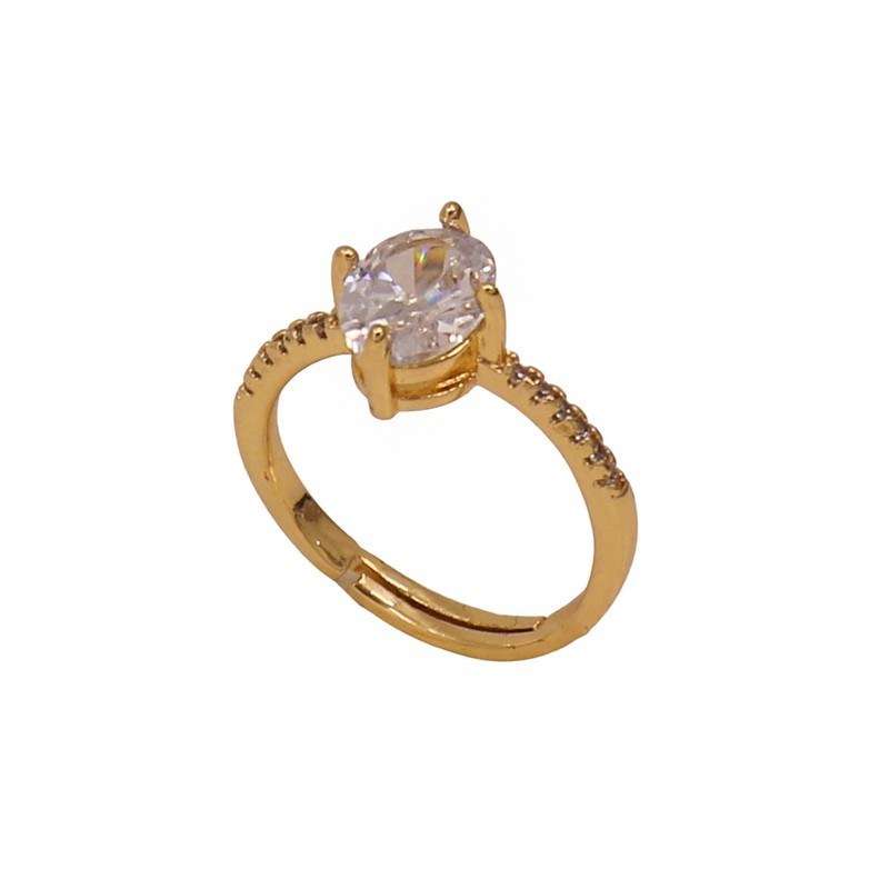 Δαχτυλίδι μονόπετρο με ζιργκόν από ανοξείδωτο ατσάλι με επιχρύσωση 14Κ. Είναι ένα δαχτυλίδι κλασικό, μονόπετρο με οβάλ πέτρα και ζιργκόν πάνω στη βέρα.