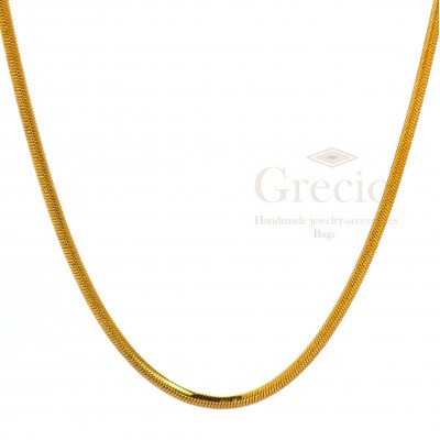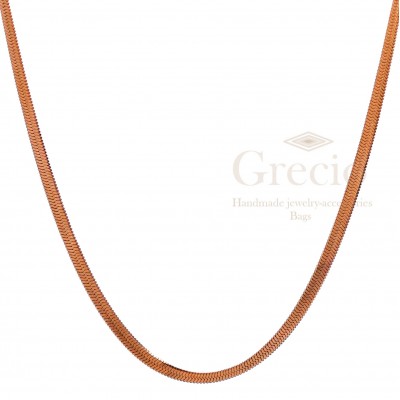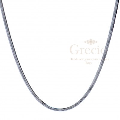 Οι αλυσίδες είναι απλές, εύκολες να τις συνδυάσεις και δίνουν λάμψη στα καθημερινά μας outfit. Οι τάσεις τις μόδας τις απαιτούν και η συγκεκριμένη είναι απλή και έχει όψη σαν φίδι. Το συγκεκριμένο σχέδιο έχει 2 διαφορετικά μεγέθη ένα πιο λεπτό και ένα πιο παχύ για να διαλέξετε αυτό που σας ταιριάζει περισσότερο. Μπορεί και να συνδυαστεί με κολιέ που ήδη έχετε χάρη στη δυνατότητα της να αυξομειώνεται. Είναι κατασκευασμένη από υποαλλεργικό υλικό που δεν μαυρίζει και μπορείτε να τη φοράτε ακόμα και στο ντους. Έχει μήκος 45cm.