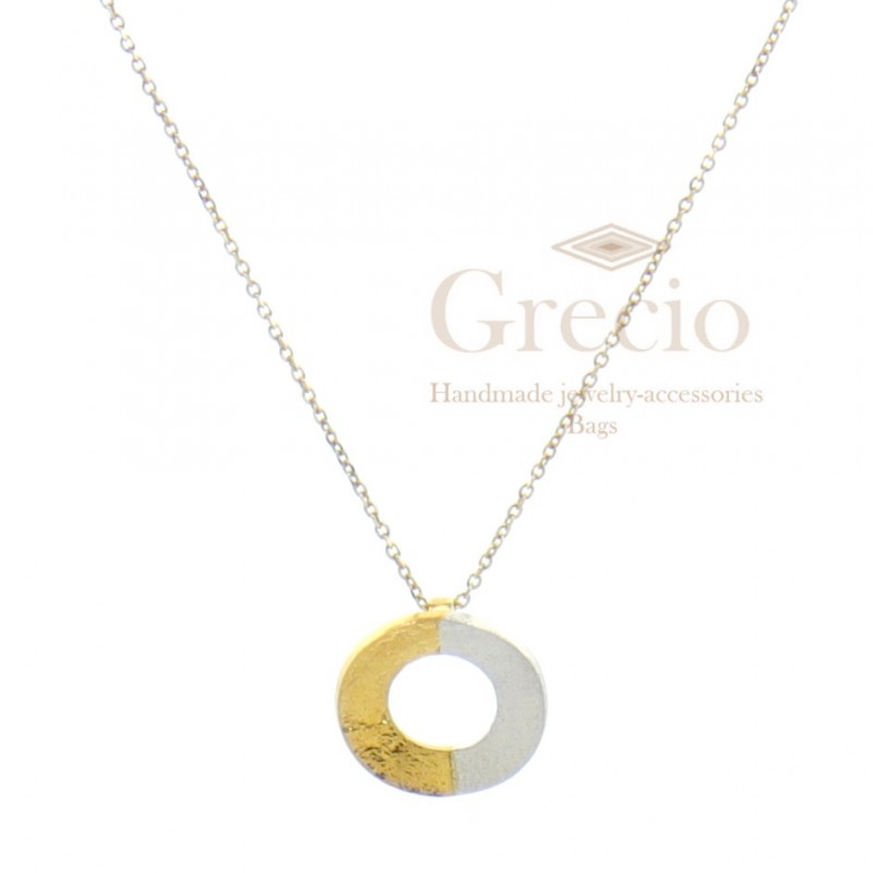 Χειροποίητο κολιέ σε γεωμετρικό στρογγυλό σχέδιο με διχρωμία από ασήμι 925. Διατίθεται στους χρωματικούς συνδυασμούς που βλέπετε.